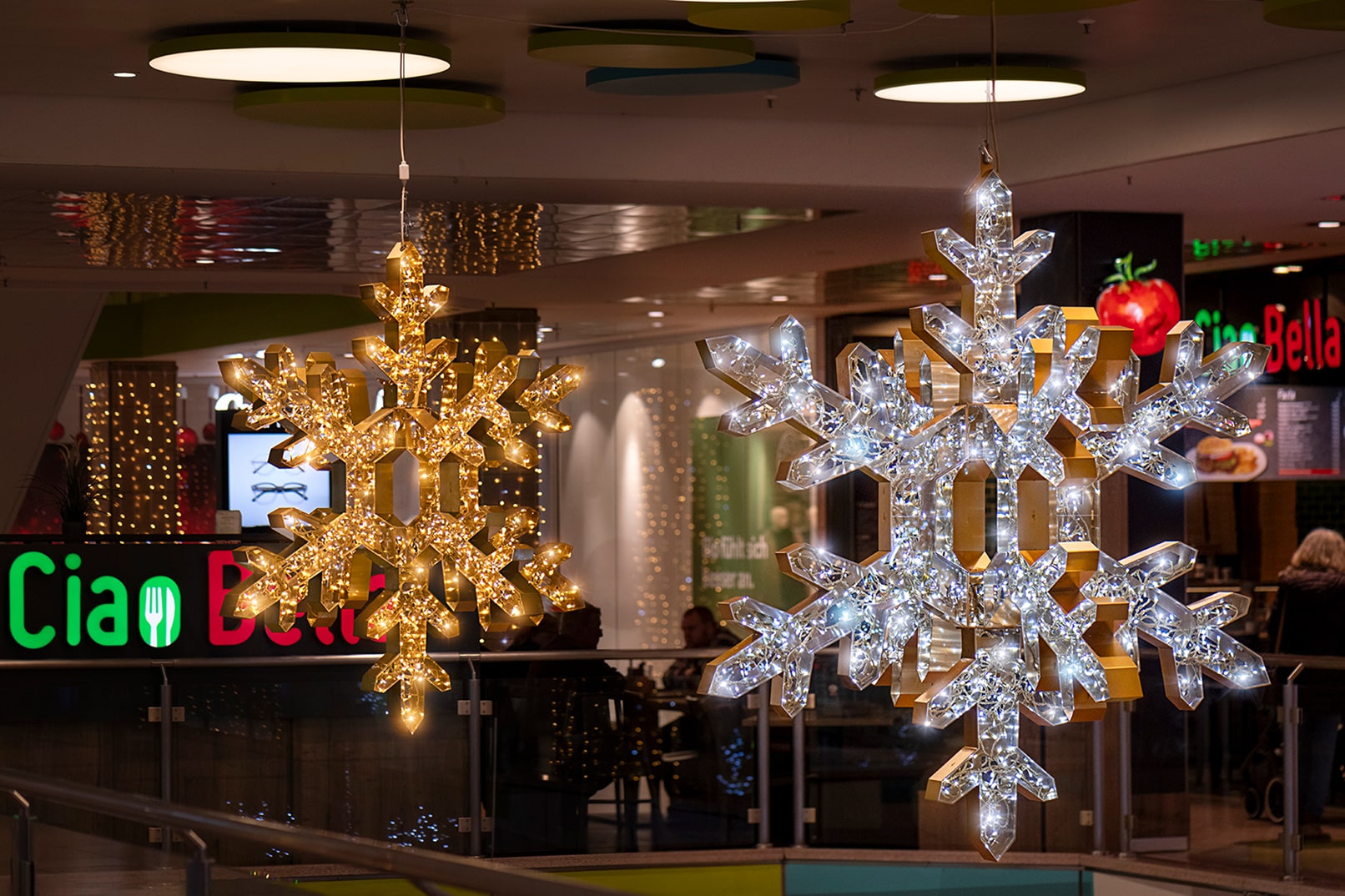 Das sympathische Multi-Kulti-Center in Mitten Hamburgs begeistert durch viel Glitzer und Glamour. Funkelnde Eiskristalle und ein zauberhafter Lichterhimmel bringen festliche Atmosphäre. Ein süßer XL-Eisbär lässt Kinderherzen höherschlagen. Die Dekoration ist bewusst familienfreundlich und robust gestaltet – hier ist Anfassen erwünscht!